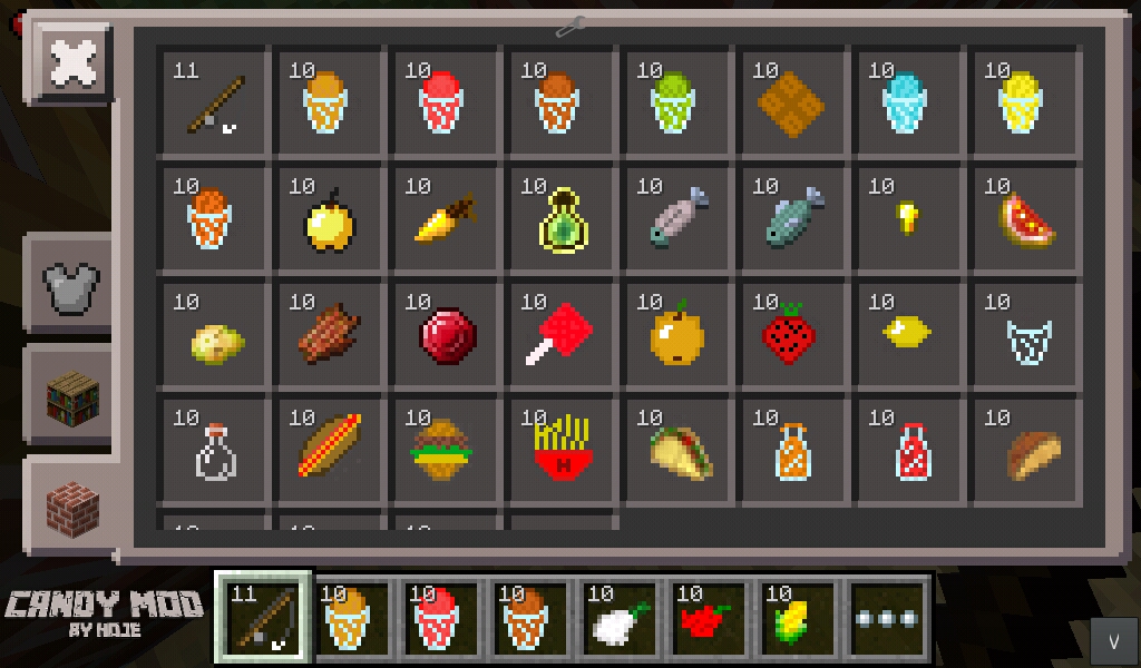 En esta actualizacion agrege mucha mas comida como hamburguess, tacos, Hot Dogs, Crafteos, y correcion de textura. Link mcpeuniverse.com/mods/candy-mod-v-2-0-by-hoje/